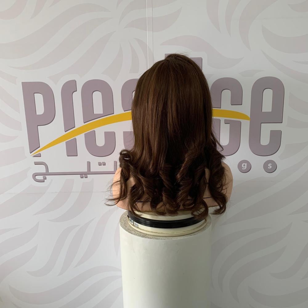 الباروكة مزودة من الداخل بحزام مطاط للتضييق والتوسيع حسب حجم الرأس وايضا أمشاط من الاجناب بكلبس لثبات محكم