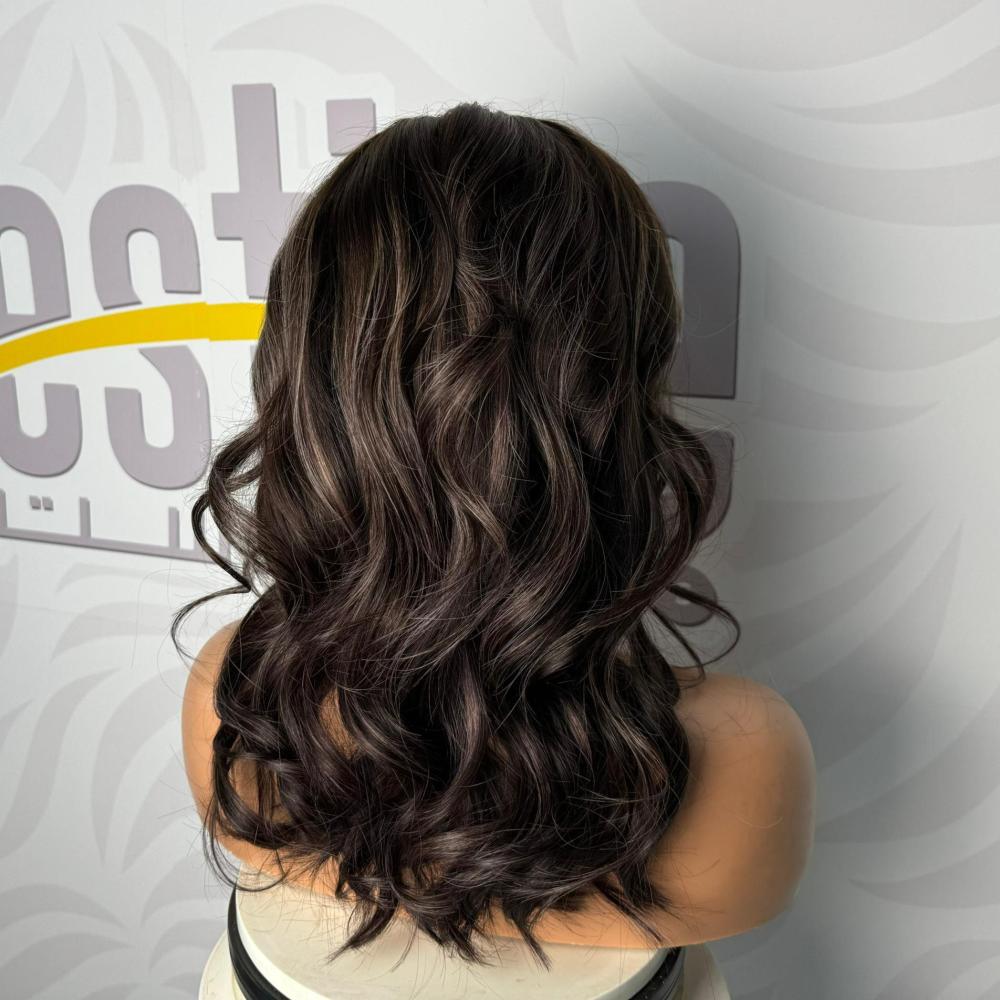 باروكة شعر طبيعي 16 انش جذور اماميه فروة دانتيل لون هايلايت