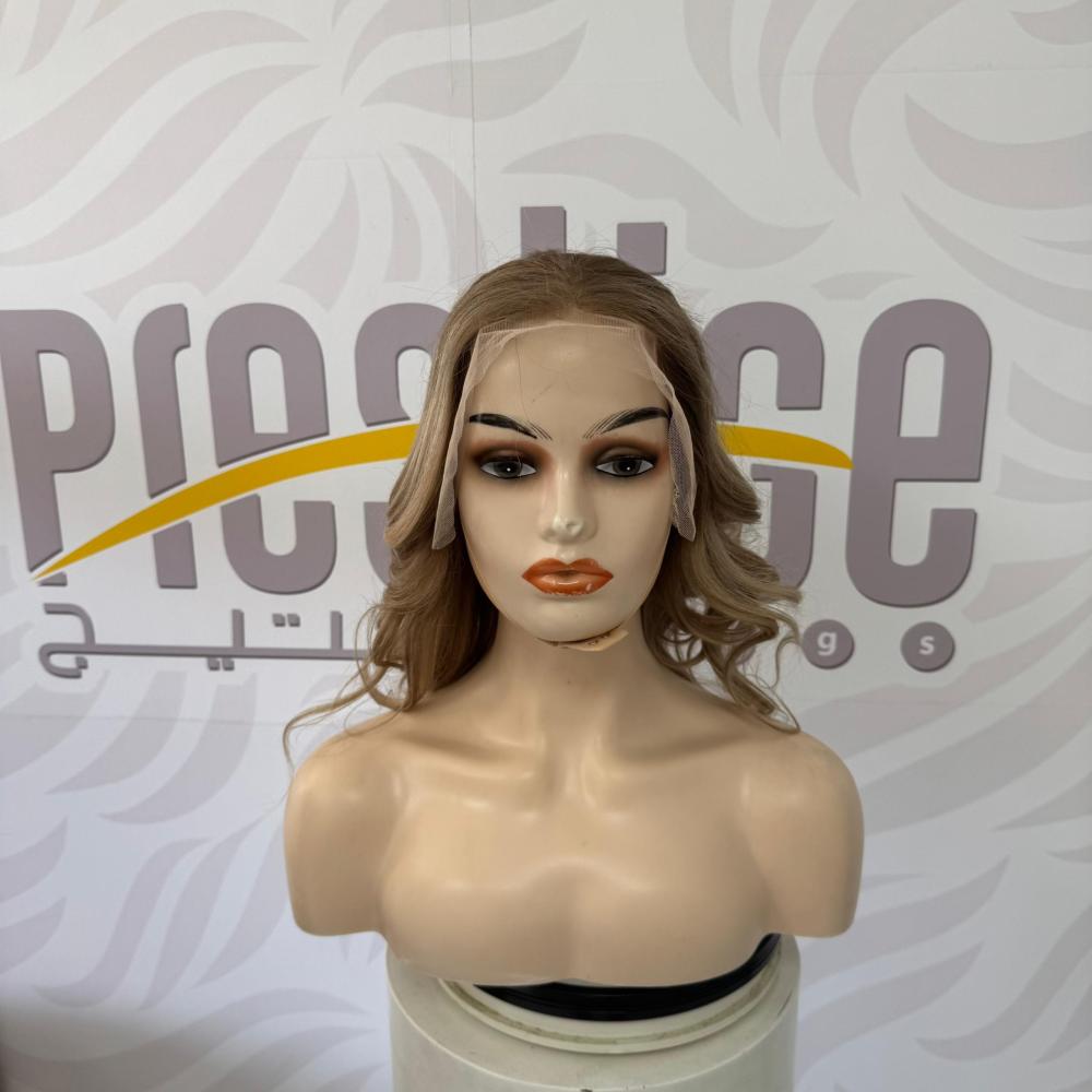 باروكة شعر طبيعي 16 انش جذور اماميه فروة دانتيل لون هايلايت اشقر